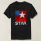 Composición suprematistica abstracta de la estrella blanca en un cuadrado rojo. También hay rectángulos azules y rojos y un círculo rojo oscuro. Estrella de texto blanco debajo de la imagen. Personalizable camiseta negra u oscura de una especie. Puede cambiar o eliminar el texto. No te olvides de elegir otro estilo, color, género de la ropa, hay más de 153 estilos disponibles.