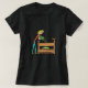 El diseño de compostaje incluye un jardinero que agrega cortes de césped a un montón de compost en crecimiento. La pila tradicional de compost está hecha de un simple recinto de madera con tierra rica y un pájaro observando al jardinero con interés. Verde, ecológico y todo ese material orgánico bueno.