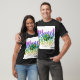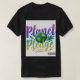 El diseño de las camisetas "Planet Pledge" presenta un globo estilizado con varios símbolos y motivos ecológicos, como hojas, flechas de reciclaje e iconos de energía renovable. El globo está rodeado por la frase "Planet Pledge" en un tipo de letra moderno y limpio. El diseño transmite un mensaje de conciencia ambiental y un compromiso con la vida sostenible.