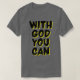 Este diseño de camisetas tiene las palabras "Con Dios que puedas" en una imagen de burbuja, más letras negras y contorno de sombras amarillas con un estilo de tipografía en este tema basado en la fe. Esta camisa está hecha de 100% algodón, es unisex y se viste bien con cualquiera y con todos. Doble costura en el dobladillo de la parte inferior y las mangas para hacerla más resistente.