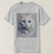 Una camiseta con el diseño frontal de un gato grande con ojos azules llamativos captura la fascinante mirada del gato y su divertida personalidad. Las obras de arte, atrevidas y detalladas, son perfectas para los amantes del gato y de la moda.