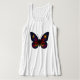 This striking butterfly illustration blends celestial symbolism with fierce, mystical energy. Saturated feathered rainbow hues are set against a star filled night sky. A glowing crescent moon rests in one upper wing, balanced by a radiant sun in the other. The lower wings reveal jewel green cat eyes, giving the piece an otherworldly presence. Add cosmic energy to your outfit with this beautiful boho art print tank top.