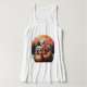"What is that in the sky?!" The adventure continues! This tank features the shocked Silkie chickens in a surreal, orange-skied mountain landscape under a giant mysterious moon (or planet?), surrounded by quiet pines, printed on both sides. A moment of awe and curiosity captured in art. Made from durable fabric for heavy loads. Featuring a max-size print for full-coverage, vibrant art. DSE Graphics | Art with Attitude.