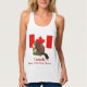 Un juego travieso de palabras para estos regalos y ropa divertidos. Presentan un castor sentado con la bandera canadiense al fondo. El texto dice "Canadá... Hogar del castor de la ira"