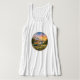 This 1960s inspired van life design features a vintage sunset scene. A painted hippie camper bus is parked in front of a shimmering lake, surrounded by towering mountain peaks and blooming wildflowers. Made for adventurers, travelers, dreamers, and anyone who feels most alive chasing the next horizon. Show off your love for the outdoors and add vintage vibes to your outfit with this groovy scoop neck tank top.
