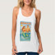 “Enganchado” combina el encanto clásico de pin-up con el humor de la pesca costera. Con un pescador rudo y una sirena coqueta en una escena de fantasía en alta mar, donde ella agarra el anzuelo y agita su cola verde joya. Colores vintage soleados, estilo de cartel antiguo y la cantidad justa de descaro hacen que esta camiseta sin mangas de cuello de cucharada sea una excelente manera de agregar energía oceánica a cualquier atuendo. | Se recomienda impresión vívida para prendas rosas.
