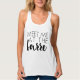 ¿No se puede conseguir lo suficiente de esos ejercicios? Ponga su estiramiento en este lindo y florido tanque de mujeres. Funciones de diseño "Meet Me at the Barre" en tipografía negra.