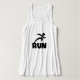Corriendo camisetas, tazas, bolsos, agujeros, camisetas de tanques, carros y otras prendas de vestir y regalos para corredores con un corredor de siluetas negro y texto negro que dice RUN. Estas prendas de vestir y artículos de regalo son geniales para cualquiera que entrene para un 5K, cualquiera que sólo ame correr, o alguien que ya ha logrado varias maratones!