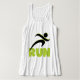 Diseño de ejecución con camisetas, caramelos, camisetas de manga larga, botones, bolsos, agujeros y otras prendas de vestir y regalos con un corredor de siluetas negro y un texto verde primavera que dice RUN. Si estás entrenando para correr tus primeros 5K, solo te encanta correr, o has hecho varias maratones, te encantarán estas prendas de vestir y artículos de regalo.
