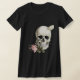 Un cráneo, con un rosa entre los dientes y una mariposa, colocado sobre el fondo de un testimonio escrito a mano de los juicios a la bruja de Salem.© Inquietantemente encantadora.
