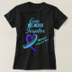 Conciencia suicida personalizada se fue pero no olvidó el corazón de camisetas olvidadas hechas de verde azulado y morado con "Conciencia suicida" dentro. Letras verde azuladas. Y un Nombre Personalizado de un Amado que nunca será olvidado junto con un mensaje personal. Fácilmente personalizado con las herramientas de diseño de Zazzles.