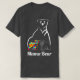 El color es muy bonito al natural, como la foto. El tejido es suave y de buena calidad. Sin defectos en el tintado, ni hilos sueltos o descosidos. Bien la impresión. Los bordes de las letras y el dibujo son nítidos, y el color contrasta muy bien con el de la camiseta.