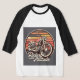 Diseño de camisetas vectoriales estilo negro retro vintage de puesta de sol angustiado, motocicleta en círculo, con texto "Viajando con actitud" en color blanco, tipografía, graffiti, 3d representaciones, 4k, steampunk, graffiti, ilustracion, foto, tipografía, 3d representaciones