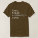 El color es muy bonito al natural, como la foto. El tejido es suave y de buena calidad. Sin defectos en el tintado, ni hilos sueltos o descosidos. Bien la impresión. Los bordes de las letras y el dibujo son nítidos, y el color contrasta muy bien con el de la camiseta.