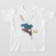 Un conejo blanco con la espalda volteada huyendo. Este diseño se ve realmente efectivo en esta camiseta para niños