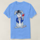 El color es muy bonito al natural, como la foto. El tejido es suave y de buena calidad. Sin defectos en el tintado, ni hilos sueltos o descosidos. Bien la impresión. Los bordes de las letras y el dibujo son nítidos, y el color contrasta muy bien con el de la camiseta.