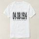 Conmemore el comienzo de uno de los mundos la mayoría de todo el de abarcamiento y conflictos cambiantes del mundo, Primera Guerra Mundial. Este artículo muestra la fecha la cual Gran Bretaña declaró guerra en la Alemania de Kaiser Wilhelm. Esta camisa es parte de Fahrenheit211.net "1066 y todo el que" colección. Estos artículos se blasonan con las fechas significativas en Británicos y la historia de mundo. Este diseño simple pero llamativo es ideal para el entusiasta de la historia o para los grupos o los individuos que desean conmemorar estas fechas significativas. Observe por favor que las fechas están expresadas en el formato británico (DD/MM/YYYY) y el formato no americano (MM/DD/YYYY).