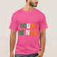 El color es muy bonito al natural, como la foto. El tejido es suave y de buena calidad. Sin defectos en el tintado, ni hilos sueltos o descosidos. Bien la impresión. Los bordes de las letras y el dibujo son nítidos, y el color contrasta muy bien con el de la camiseta.