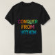 El diseño de la camiseta "Conquer From Within" presenta un sorprendente ilustracion minimalista de una persona que se libera de las cadenas, simbolizando el empoderamiento y la transformación personal. El gráfico se complementa con tipografía audaz y moderna que refuerza el mensaje de fortaleza interior y resiliencia. Con líneas limpias y un poderoso mensaje visual, este diseño sirve como recordatorio para superar obstáculos y aprovechar el poder que hay dentro. Perfecto para cualquiera que esté motivado a superar los desafíos y tomar el control de su propio destino.