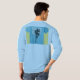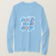 La camiseta presenta un diseño atrevido y minimalista con la frase "Construye tu cuerpo" escrita en una fuente grande y sans-serif. Las cartas están apiladas unas encima de otras, creando una sensación de movimiento e impulso. El fondo es un color azul claro y sencillo que ayuda a resaltar el texto. El diseño general es limpio y moderno, con un fuerte énfasis en el mensaje.