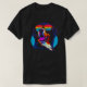 El color es muy bonito al natural, como la foto. El tejido es suave y de buena calidad. Sin defectos en el tintado, ni hilos sueltos o descosidos. Bien la impresión. Los bordes de las letras y el dibujo son nítidos, y el color contrasta muy bien con el de la camiseta.