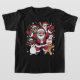 This lively holiday design features a cool Santa wearing gold chains and sunglasses, surrounded by joyful friends including a penguin, gingerbread man, snowman, elf, and reindeer. With bold colors, playful poses, and festive details like snowflakes and scarves, the artwork captures the fun, energetic side of Christmas. Perfect for fans of humorous holiday art, this design blends festive cheer with a stylish, modern twist.