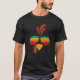 El color es muy bonito al natural, como la foto. El tejido es suave y de buena calidad. Sin defectos en el tintado, ni hilos sueltos o descosidos. Bien la impresión. Los bordes de las letras y el dibujo son nítidos, y el color contrasta muy bien con el de la camiseta.