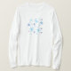 Esta camisa larga del jersey de la manga ofrece un modelo abstracto de los copos de nieve azules en colores pastel delicados que flotan en un fondo del blanco nevoso. Esto coordinará con muchos colores y es perfecto para las vacaciones.