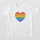 Esta obra de arte presenta un colorido corazón a rayas arco iris.