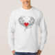 Corazón rojo pintado de forma artística con alas de ángel gris, decorado con un contorno suave negro.
