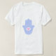 Símbolo judío y musulmán diseñado para protegerse del mal ojo. Mano de Fátima o Miriam hamsa. Corte de ojos en la palma con iris de corazón rosado. Diseño vectorial de dos colores.