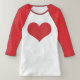 Camiseta Bella+Canvas 3/4 Sleeve Raglan blanca y roja de mujer con una imagen de corazón rojo. Ver toda la colección de prendas de vestir El día de San Valentín en los TOUCHES ESPECIALES | Sección de favoritos de partido.