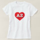 Esta camiseta tiene un vibrante corazón rojo que contiene las letras en negrita blancas altas del funda AZ, la abreviatura oficial del estado de Arizona.