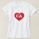 Esta camisa presenta un vibrante corazón rojo que contiene las letras audaces, blancas y altas del funda CA, la abreviatura oficial de California, el estado dorado.