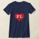 Esta camiseta tiene un vibrante corazón rojo que contiene las letras en negrita y blanca superior del funda FL, la abreviatura oficial de Florida, el estado de la luz del sol.