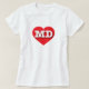 Esta camiseta tiene un vibrante corazón rojo que contiene las letras negrita, blanca y alta del funda MD, la abreviatura oficial del estado de Maryland, la antigua línea estatal.