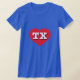 Esta camiseta tiene un vibrante corazón rojo que contiene las letras atrevidas, blancas y fundas superiores TX, la abreviatura oficial del estado de Texas, el estado de la estrella solitaria.