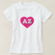 Esta camiseta tiene un vibrante corazón rosado caliente que contiene las letras en negrita, blanca y alta funda AZ, la abreviatura oficial de Arizona, el estado del Gran Cañón.