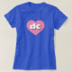 Esta camiseta tiene un corazón rosa claro y vibrante que contiene las letras negrita, blanca, redondeada de funda inferior dc, una abreviatura juguetona para el Distrito de Columbia.
