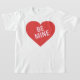 Una linda camiseta con el texto - Be Mine escrito dentro de un gran corazón rojo.