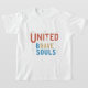 Este diseño de camisetas promueve la unidad y el coraje con el mensaje "United Hearts Brave Souls" en una vibrante pantalla multicolor. Cada palabra es un color diferente, simbolizando la diversidad de los corazones que se unen y la valentía que poseen.