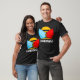 El color es muy bonito al natural, como la foto. El tejido es suave y de buena calidad. Sin defectos en el tintado, ni hilos sueltos o descosidos. Bien la impresión. Los bordes de las letras y el dibujo son nítidos, y el color contrasta muy bien con el de la camiseta.