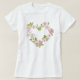 Esta ilustración de acuarela muestra una corona floral en forma de corazón compuesta por rosas suaves de color rosa, delicadas flores, hojas frescas verdes y detalles botánicos sutiles. El estilo pintado a mano y las pinceladas fluidas crean una composición natural y aireada con un ambiente romántico suave.