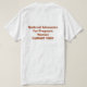 camiseta de algodón del blanco del 100% con las mangas cortas, disponibles de tamaños hasta 4X. La línea logotipo de NAPW en el frente en marrón y "abogados nacionales para las mujeres embarazadas" escritas en letras marrones en la parte posterior.