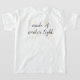 The back carries a minimalist touch: a delicate celestial emblem with tiny stars and a soft winter aura, accompanied by the ethereal phrase Made of Winter Light. Together, these elements create a multidimensional design that celebrates the beauty of the holidays while honoring the cosmic connection we all share.
