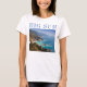 El color es muy bonito al natural, como la foto. El tejido es suave y de buena calidad. Sin defectos en el tintado, ni hilos sueltos o descosidos. Bien la impresión. Los bordes de las letras y el dibujo son nítidos, y el color contrasta muy bien con el de la camiseta.