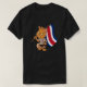 El color es muy bonito al natural, como la foto. El tejido es suave y de buena calidad. Sin defectos en el tintado, ni hilos sueltos o descosidos. Bien la impresión. Los bordes de las letras y el dibujo son nítidos, y el color contrasta muy bien con el de la camiseta.