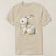 A sweet white bunny sits gracefully in soft pastel tones, dressed in a vintage-style patchwork apron and scalloped collar that echo gentle cottagecore charm. Delicate florals, gingham touches, and warm blush accents create a dreamy, nostalgic mood perfect for cozy nursery atmospheres and storybook-style scenes. The artwork blends whimsical folk details and soft watercolor shading for a tender, heartwarming aesthetic full of calm, handmade warmth. AI generated artwork.