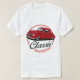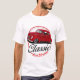 Esta es una representación de un coche de vara americano clásico con gráficos rojos vintage en el fondo para un estilo retro.
