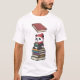 A delightful cartoon illustration of a studious panda bear bundled up in a warm red knit beanie and matching scarf. The adorable character sits perched atop a colorful tower of hardcover books, happily engrossed in a small green volume while a large red book floats whimsically overhead.